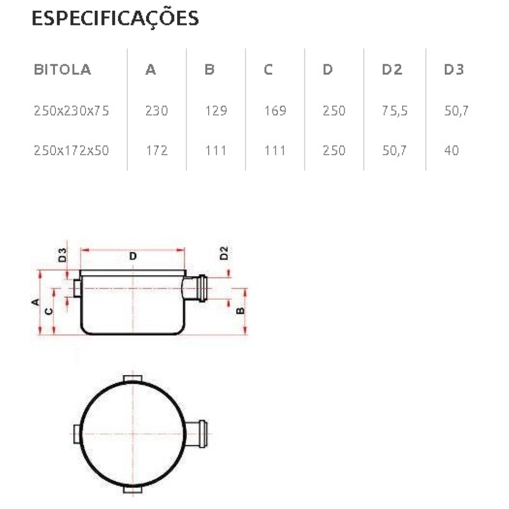 Corpo de caixa sifonada com 3 entradas - gordura; Fornecedor: Amanco; Tamanho: 250x230x75; Cor: Branco; Modelo: Montada; Material: PVC. Peso: 1,154 kg