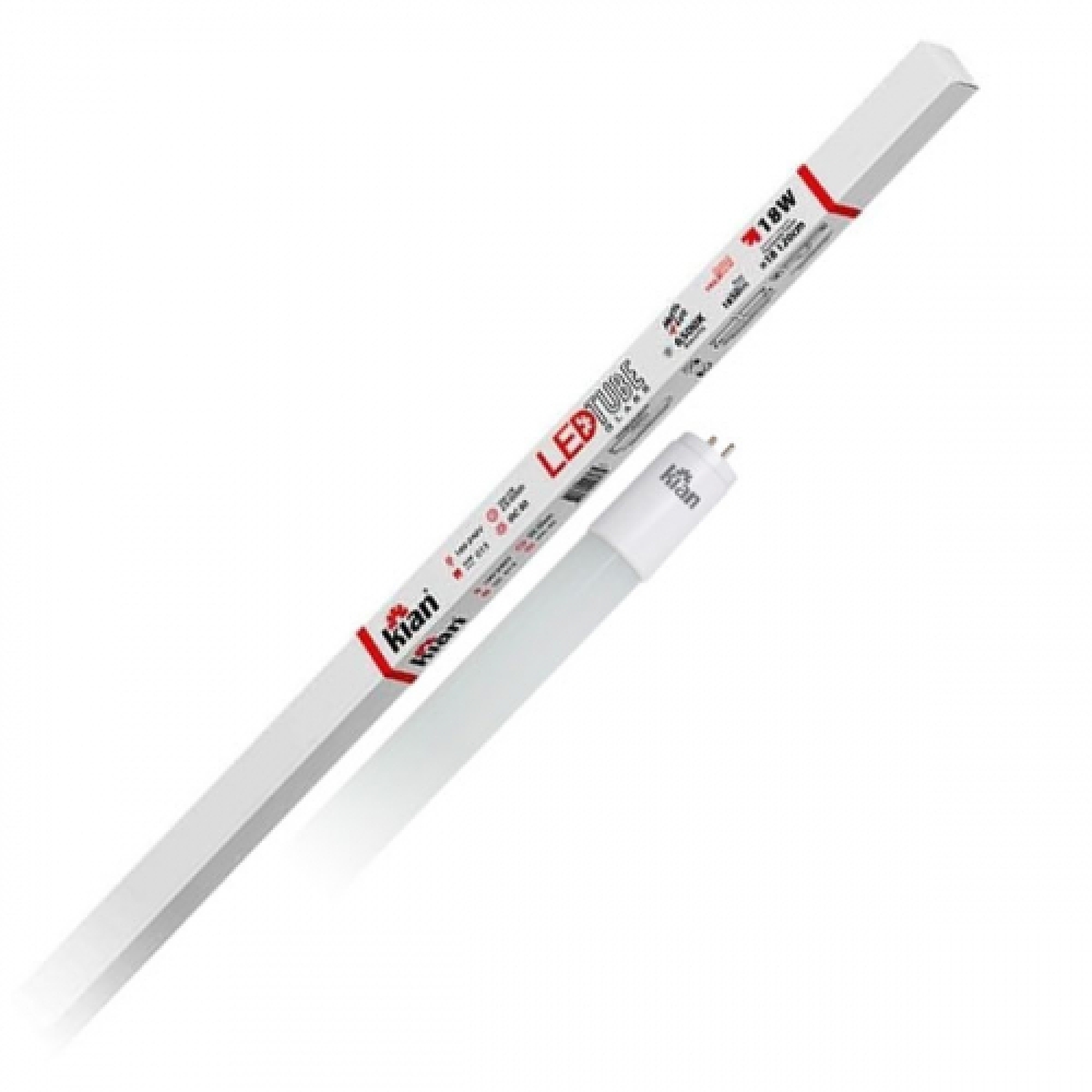 Caracteríscas: -Tipo de Lâmpada: Led -Marca: Kian -Modelo: Tubular -Material: Vidro -Equivalência: T8 120cm -Temperatura de cor: 6.500k -Potência: 18W -Fluxo luminoso: 1.850 Lumeis