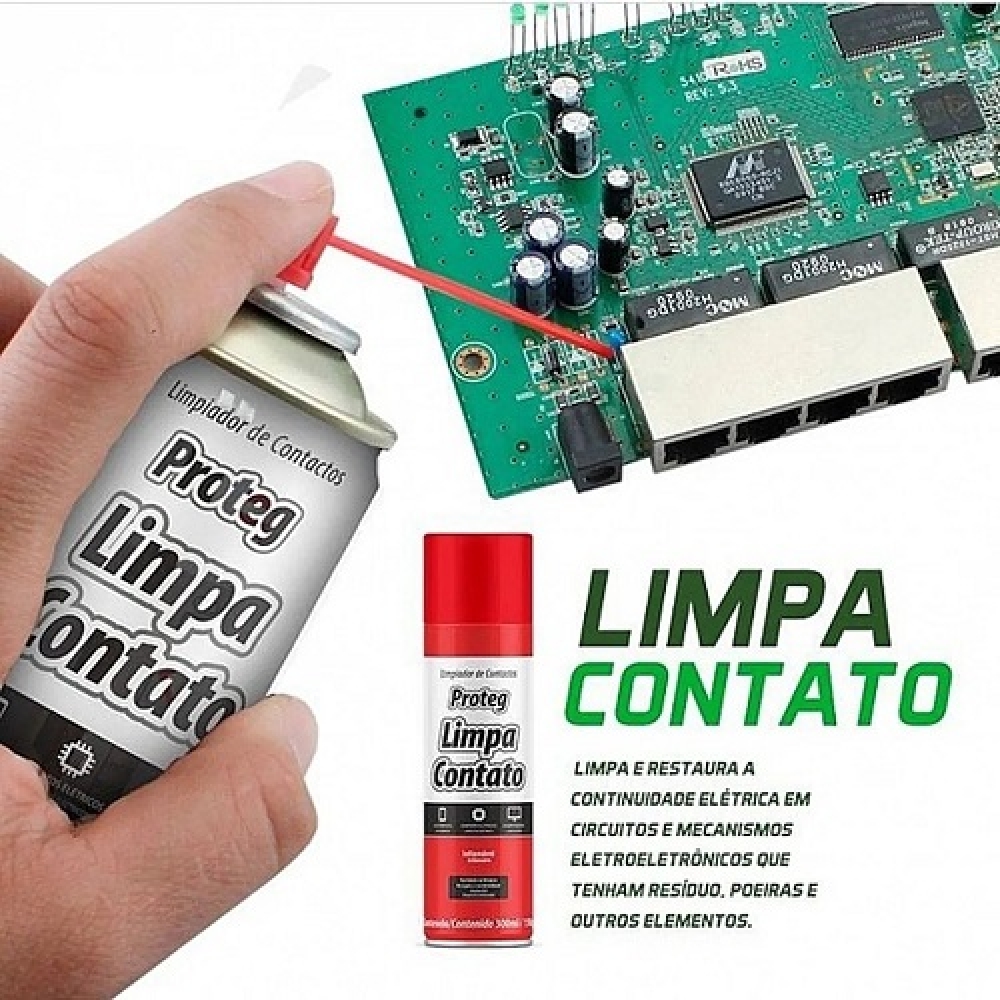 O Limpa Contato tem a função de limpar e restaurar a continuidade elétrica de circuitos e mecanismos eletroeletrônicos. Indicado para uso em conectores, cabos de velas, fusíveis, meios magnéticos, sensores ópticos, contatos de aparelhos, entre outros. MODO DE USAR: Agite bem antes de cada aplicação. Desligue o equipamento de qualquer fonte elétrica e aplique o produto nos locais ou peças a serem limpos, a uma distância de 5 a 10 cm. Instantaneamente verá agir, retirando toda a sujeira, sem deixar resíduos. Em locais de difícil acesso utilize o prolongador.