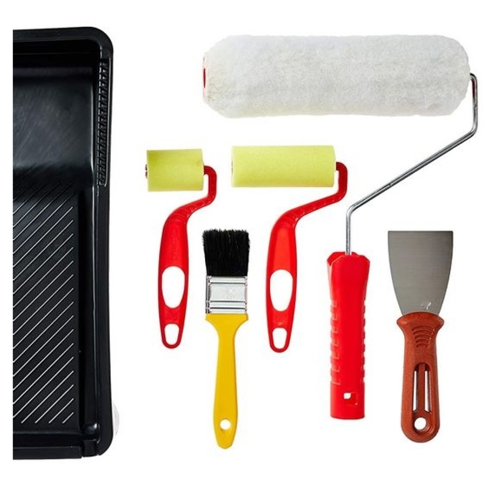 Kit para Pintura Completo Atlas vem com bandeja, trincha 1.1/2” de cerda preta, espátula de 6cm, dois rolos de espuma de 5 e 9cm, garfo e rolo de lã de poliéster de alta densidade de 23cm. Perfeito para preparação, pintura e acabamento em superfícies lisas e semi rugosas. Use com tintas acrílica, látex (PVA) e esmalte.