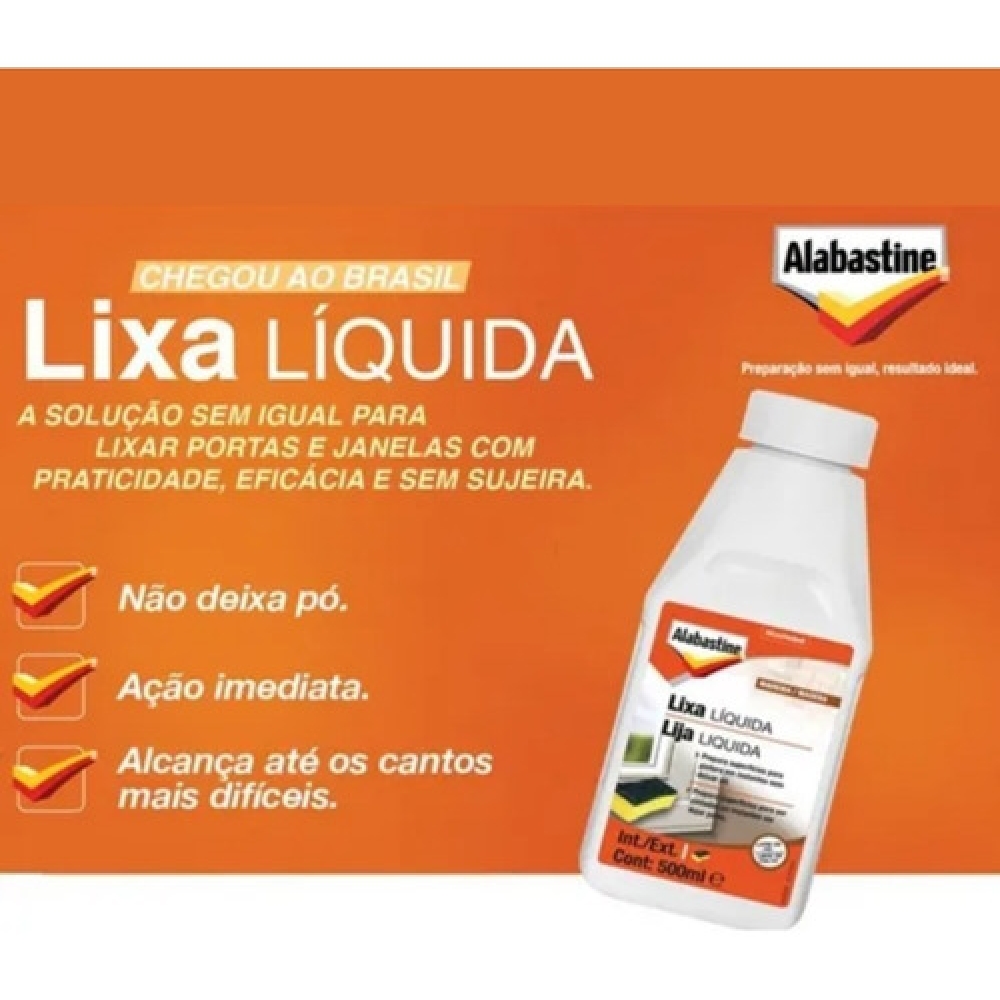 Lixa Líquida Alabastine é um preparador de superfícies que substitui a lixa convencional na hora de remover o brilho das superfícies de madeira, preparando-as para receber uma nova pintura. Prepara superfícies para pintura em instantes sem deixar pó.