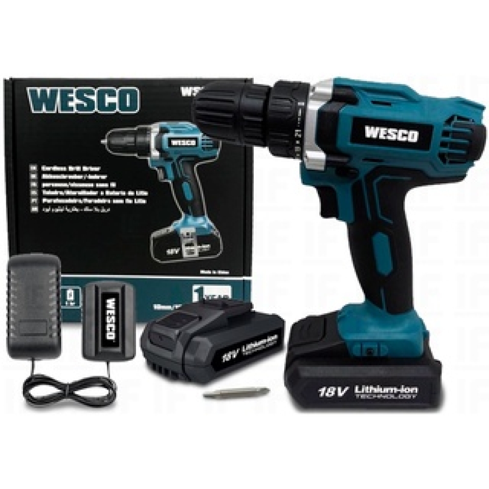 Parafusadeira Furadeira 10mm a Bateria 18V Li-Ion com Carregador Bivolt - WESCO-WS2972