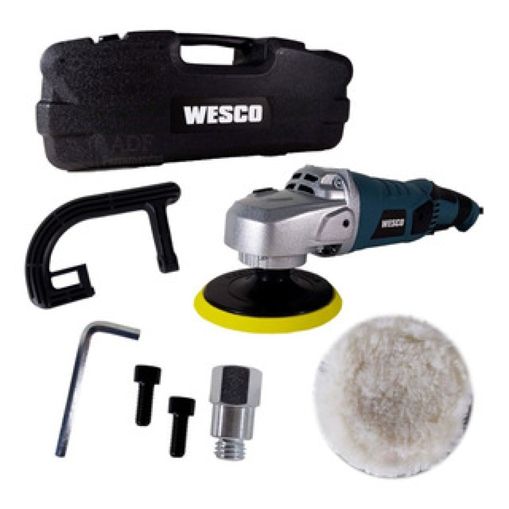 Troca externa de escova de carvão; Empunhadura auxiliar; 2 em 1 - Lixadeira e Politriz; Velocidade Variável; Botão trava; Peso 2,6 Kg;