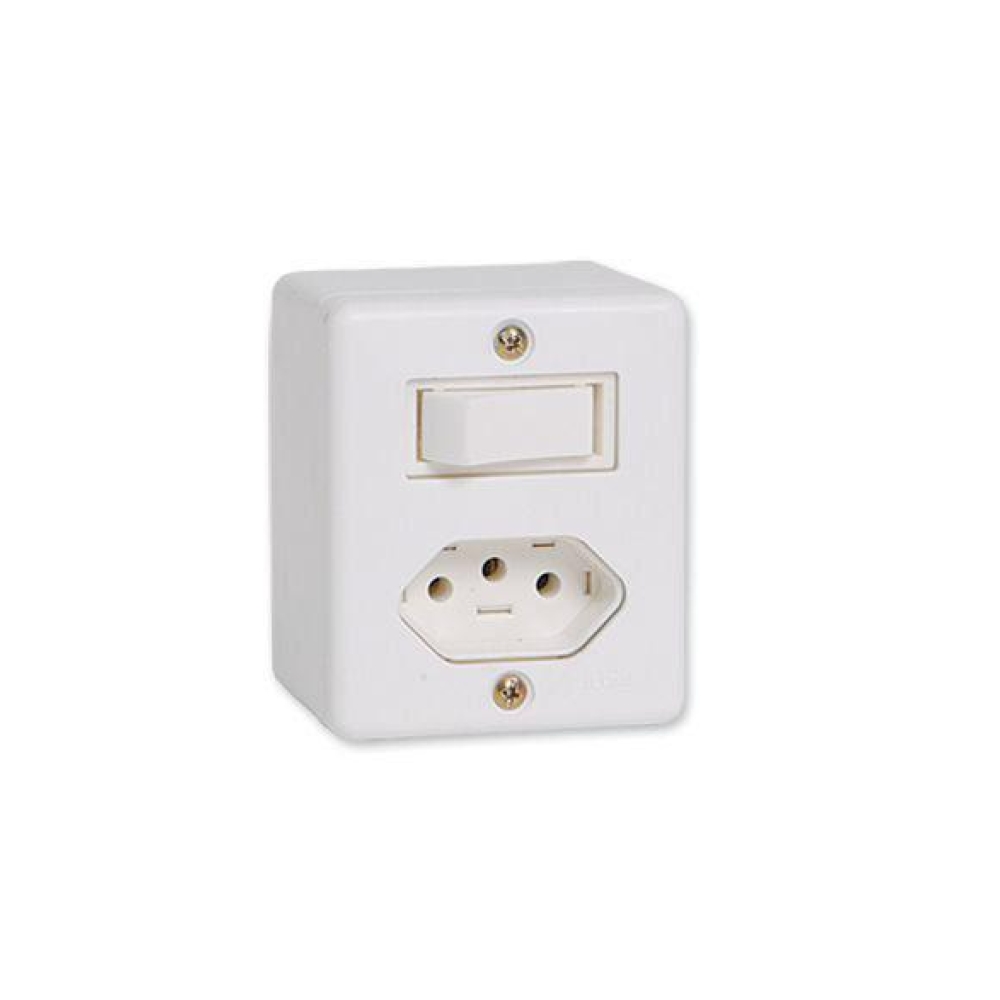 Box Interruptor 1 Seção Simples + Tomada 10A 2P + Terra Sistema X Sobrepor 63200 Ilumi