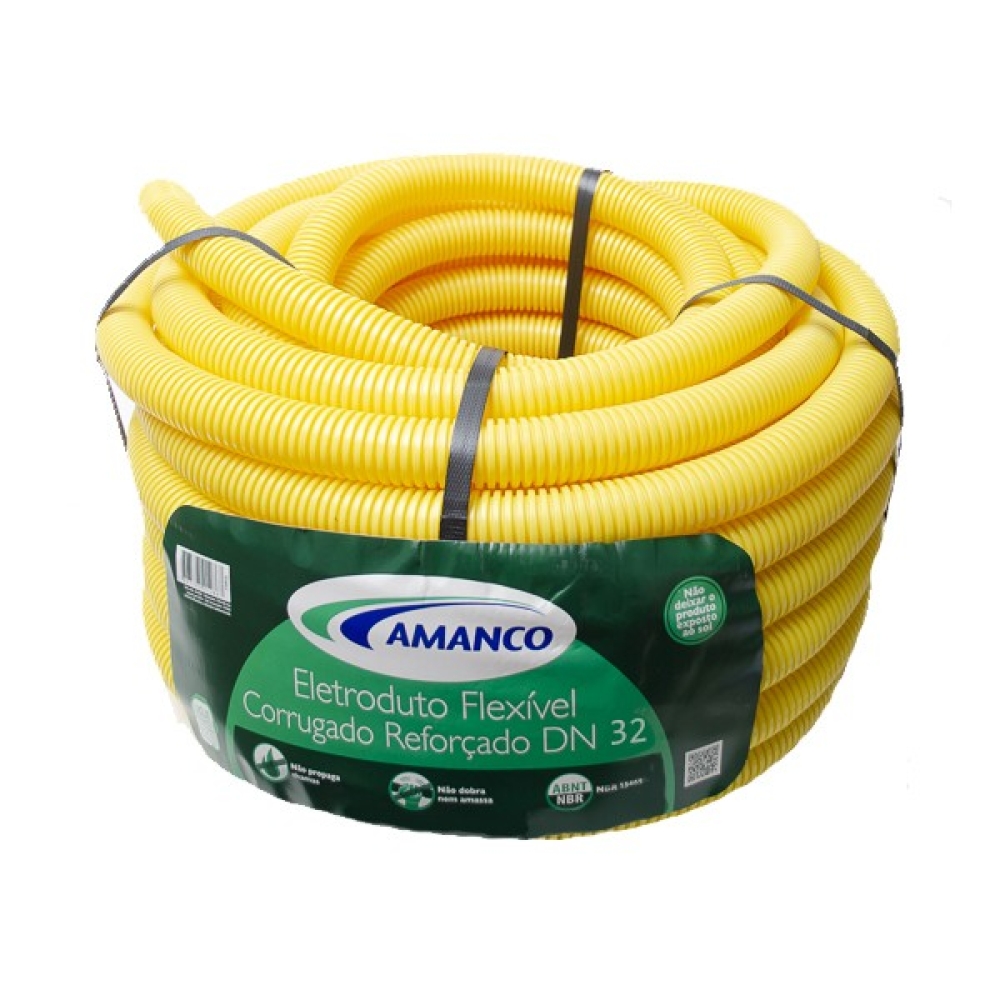 O Eletroduto Corrugado Flexível 32mm x 25 metros Amanco são aplicados em instalações prediais elétricas de baixa tensão, para condução e acomodação de fios, cabos elétricos e dispositivos embutidos em paredes e lajes, ou aparentes em local protegido.