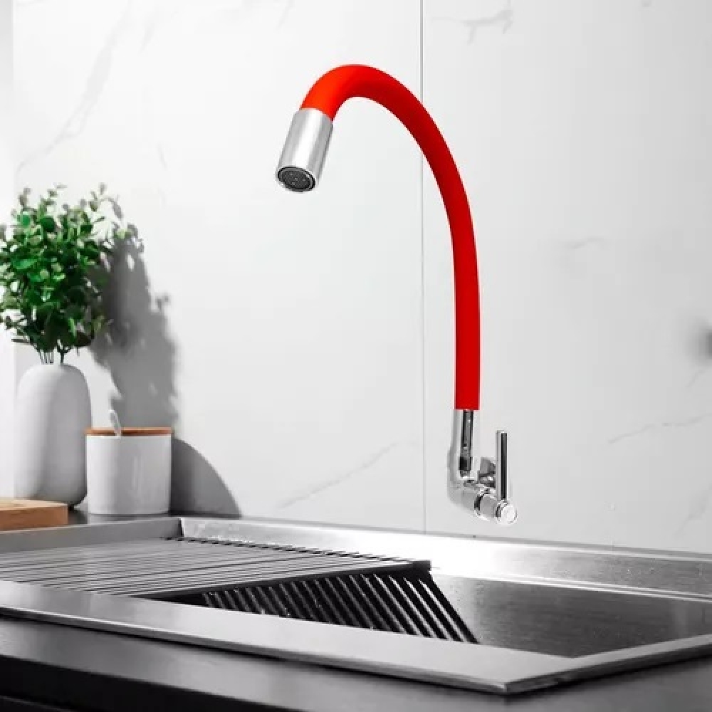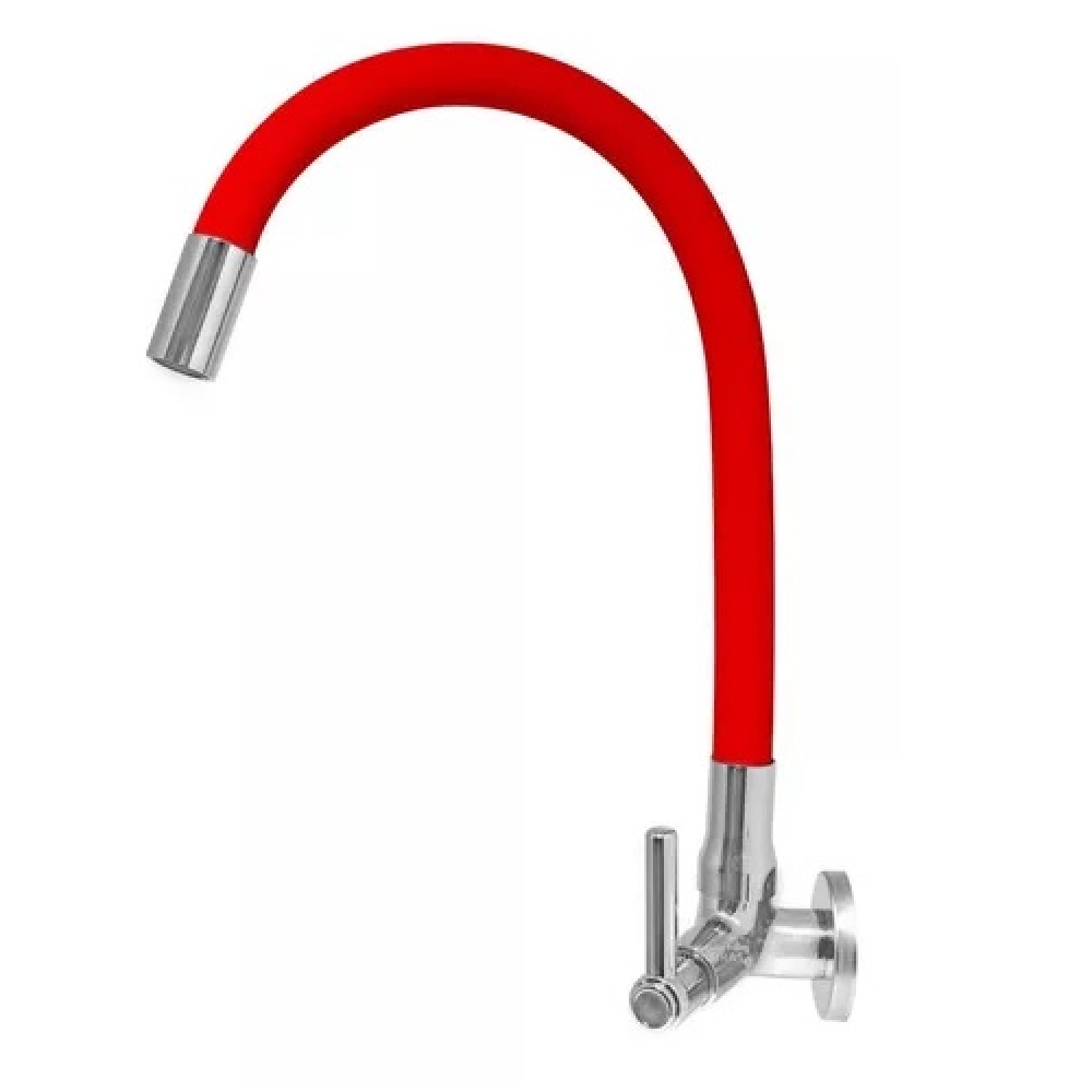 Torneira em Metal. Bitola: 1/2 com redução de 3/4. Mecanismo de vedação: 1/4volta-M18 Canopla: inox Arejador: fixo Bica: Flexível Local de instalação: Cozinha Parede Peso aproximado:800gr Cor: Vermelha