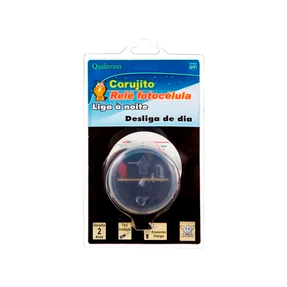ESPECIFICAÇÕES - Modelo QR51. - Fabricante : Qualitronix. - Tensão : Bivolt 127 / 220 volts. - Suporta : 127v - 500 Watts / 220v - 1000 Watts Lampadas Incandescente - Suporta : 127V - 160 Watts / 220v - 320 Watts Lampada Fluorescente - Fixação : Através de suporte tipo "L" - Horário de acendimento : Próximo 18hs em dias normais de luminosidade. - Horário de desligamento : Próximo das 6hs em dias normais de luminosidade. - Dimensões embalagem: 6 cm altura / 12 cm de largura / 17 cm de comprimento. - Peso: 70 gramas - Garantia : 2 Anos