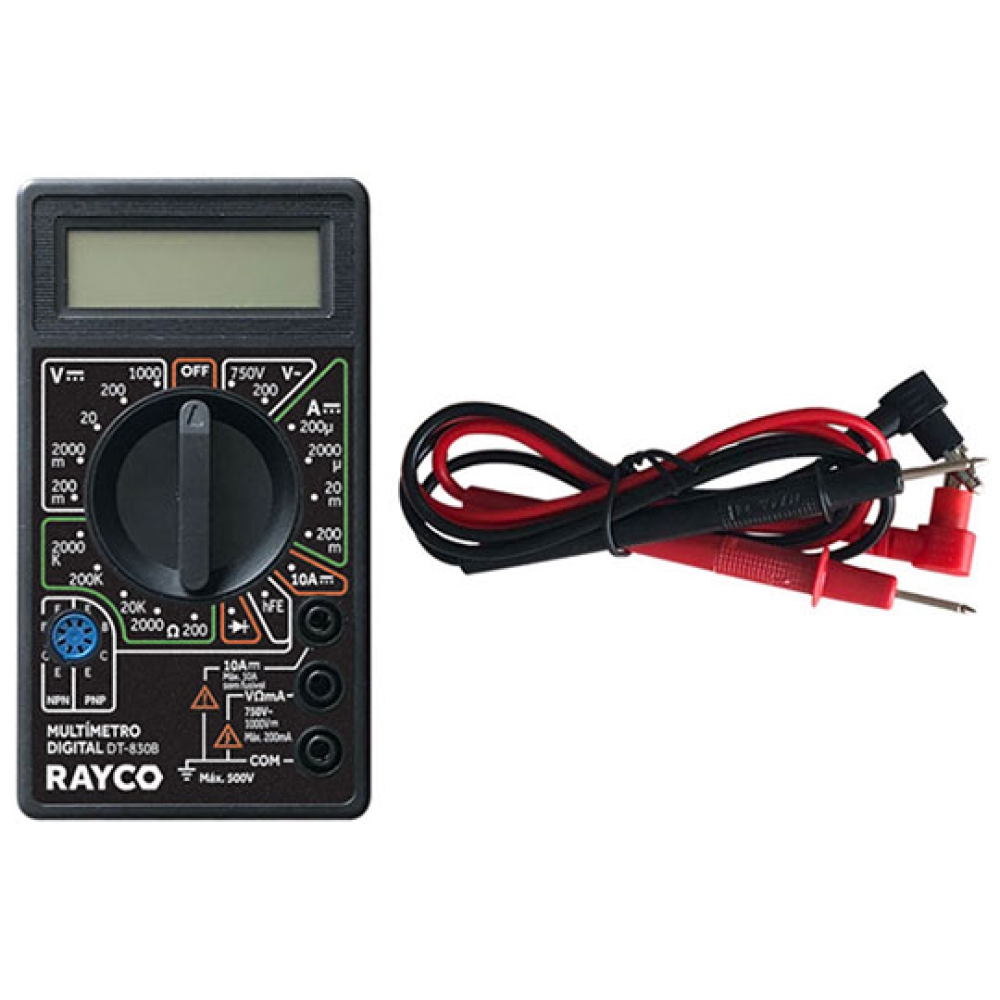 Mede tensão contínua e alternada, corrente contínua, resistência e realiza testes de diodo e transistor HFE.