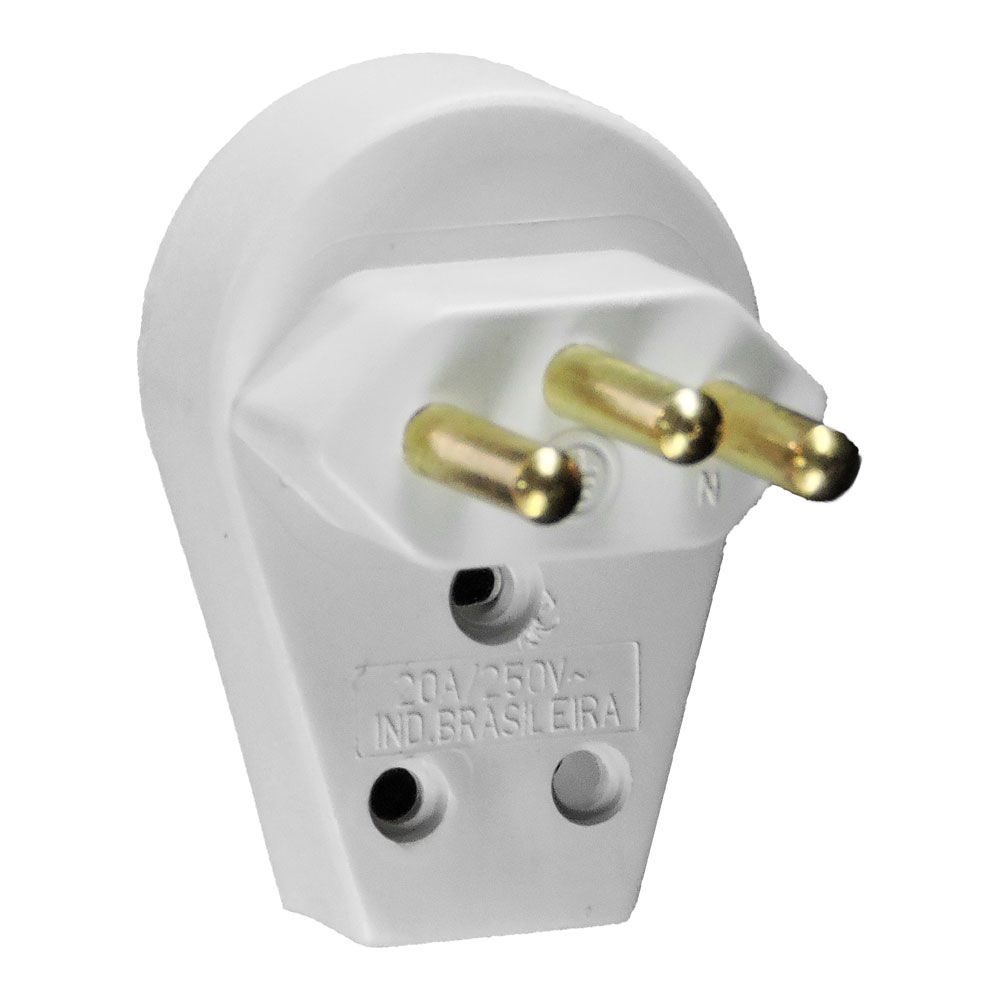 Plugue Macho Prensa Cabo 2 Pólos + Terra Branco 20A 1440 Ilumi