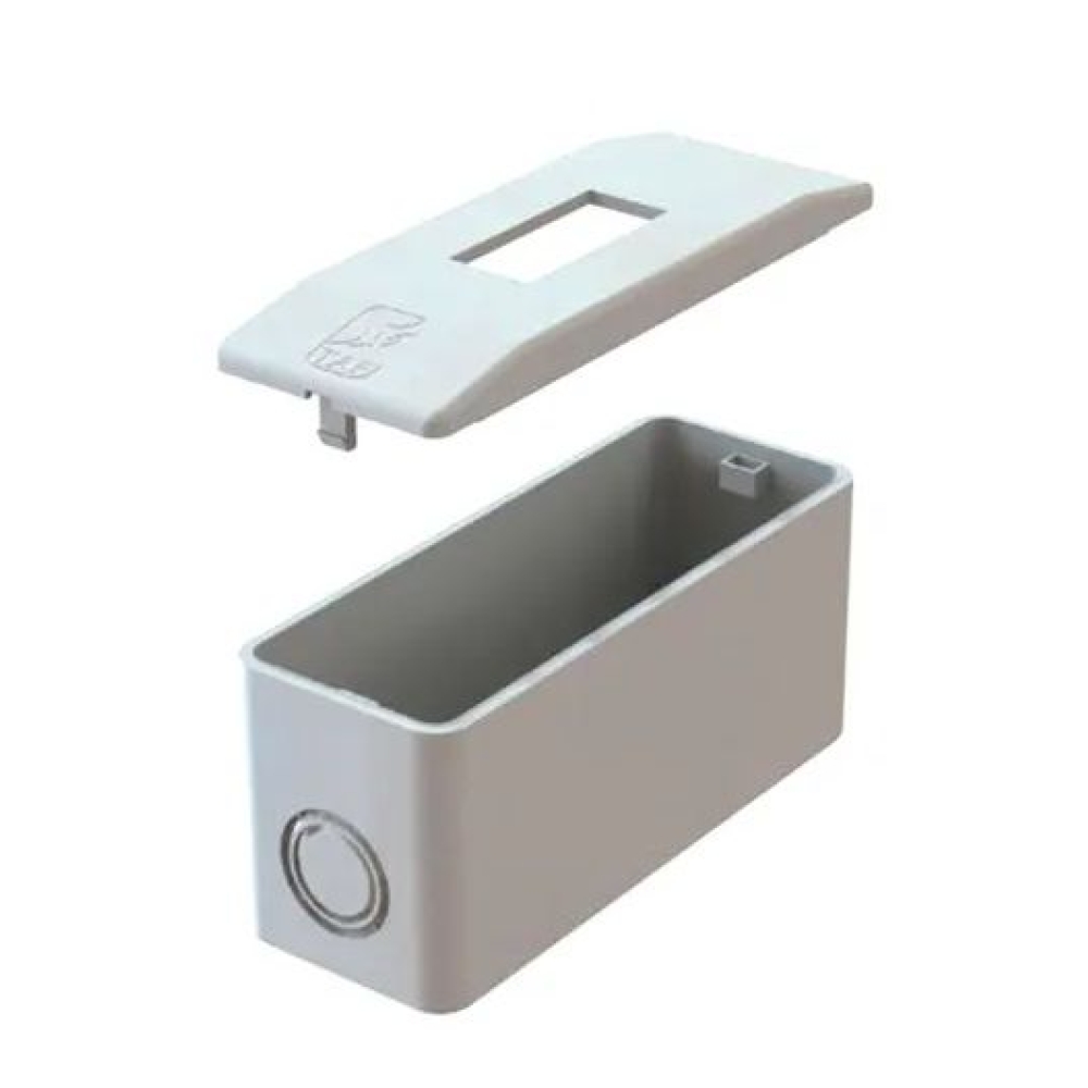 Caixa destinada à instalação de disjuntor monopolar padrão DIN/NEMA. Confeccionado em Polipropileno (PP) branco, o produto possui pré-cortes para entrada de eletrodutos ½”, ¾” e 1”. Acompanha base de engate rápido padrão DIN para fixação do disjuntor.