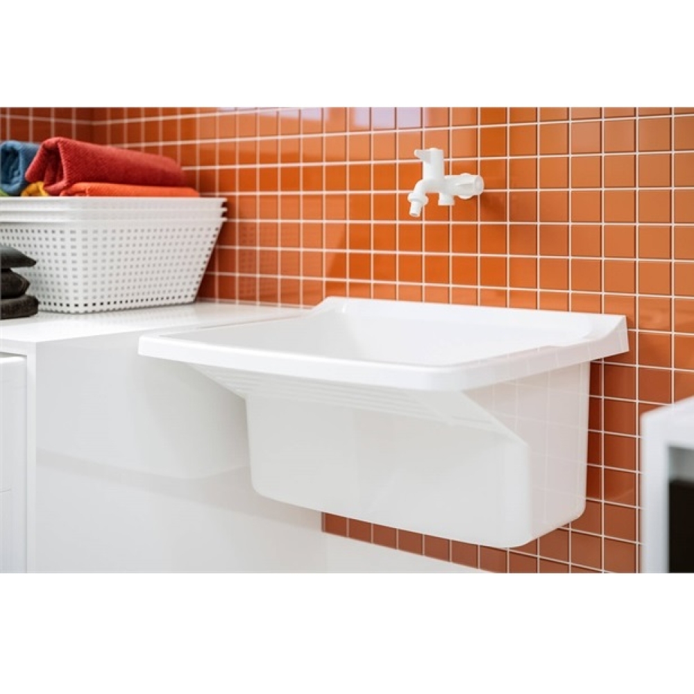 Características • Fabricado em polipropileno. • Resistente à ação de produtos químicos. • Possui aditivo anti UV (resistente aos raios solares). • Acompanha válvula de 1 1/4", parafusos para fixação, tampa de válvula e dois espaçadores. • Capacidade para 40 litros. • Possui porta sabonete. • Ergonômico.