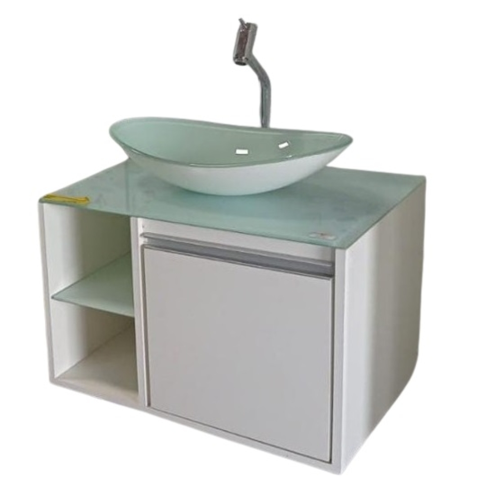 Medida: 60cm Cor do MDF: Branco Cor do Vidro: Branco