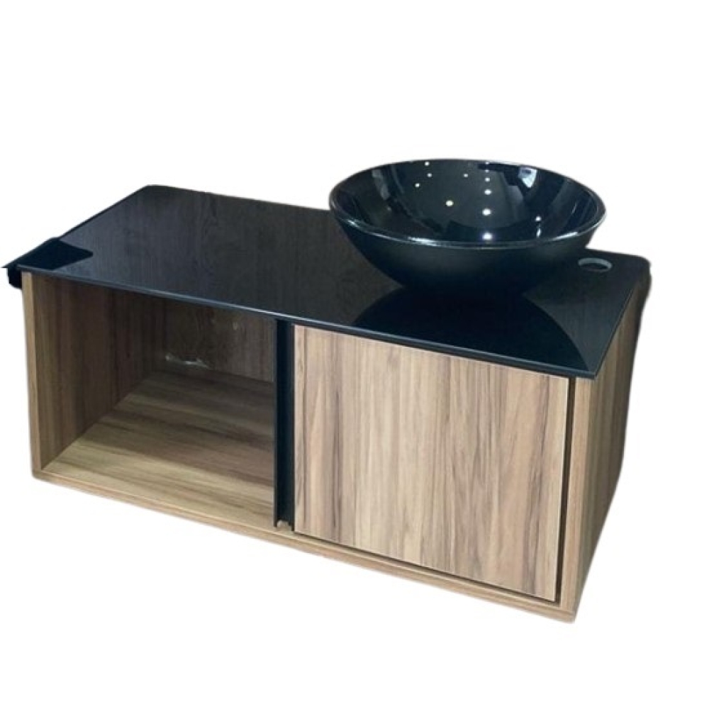 Medida: 70cm Cor do MDF: Castanea Cor do Vidro: Preto