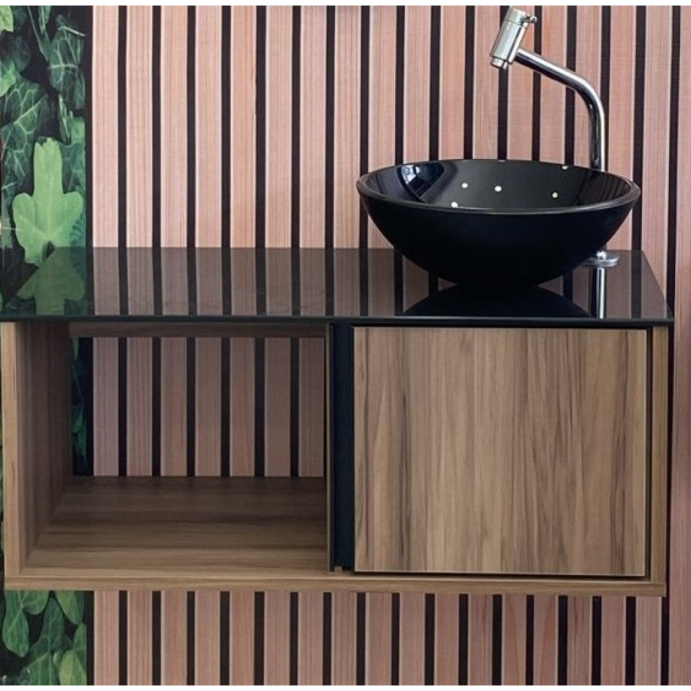Gabinete para Banheiro Violeta Castanea MDF 70cm Vidro Preto Vildrex