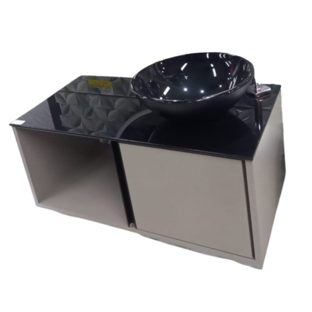 Medida: 70cm Cor do MDF: Fendi Cor do Vidro: Preto