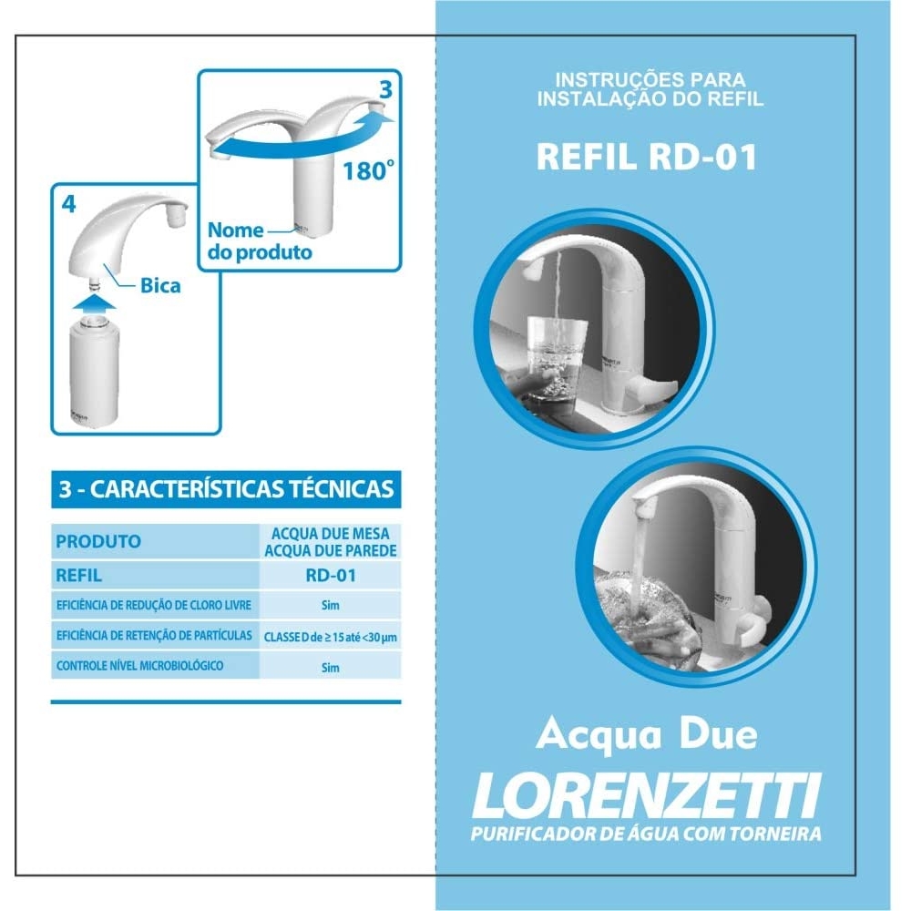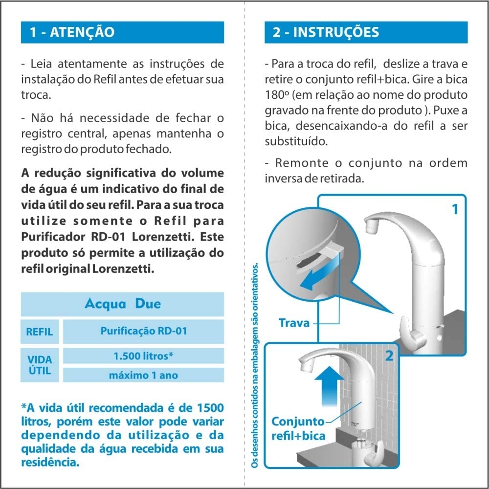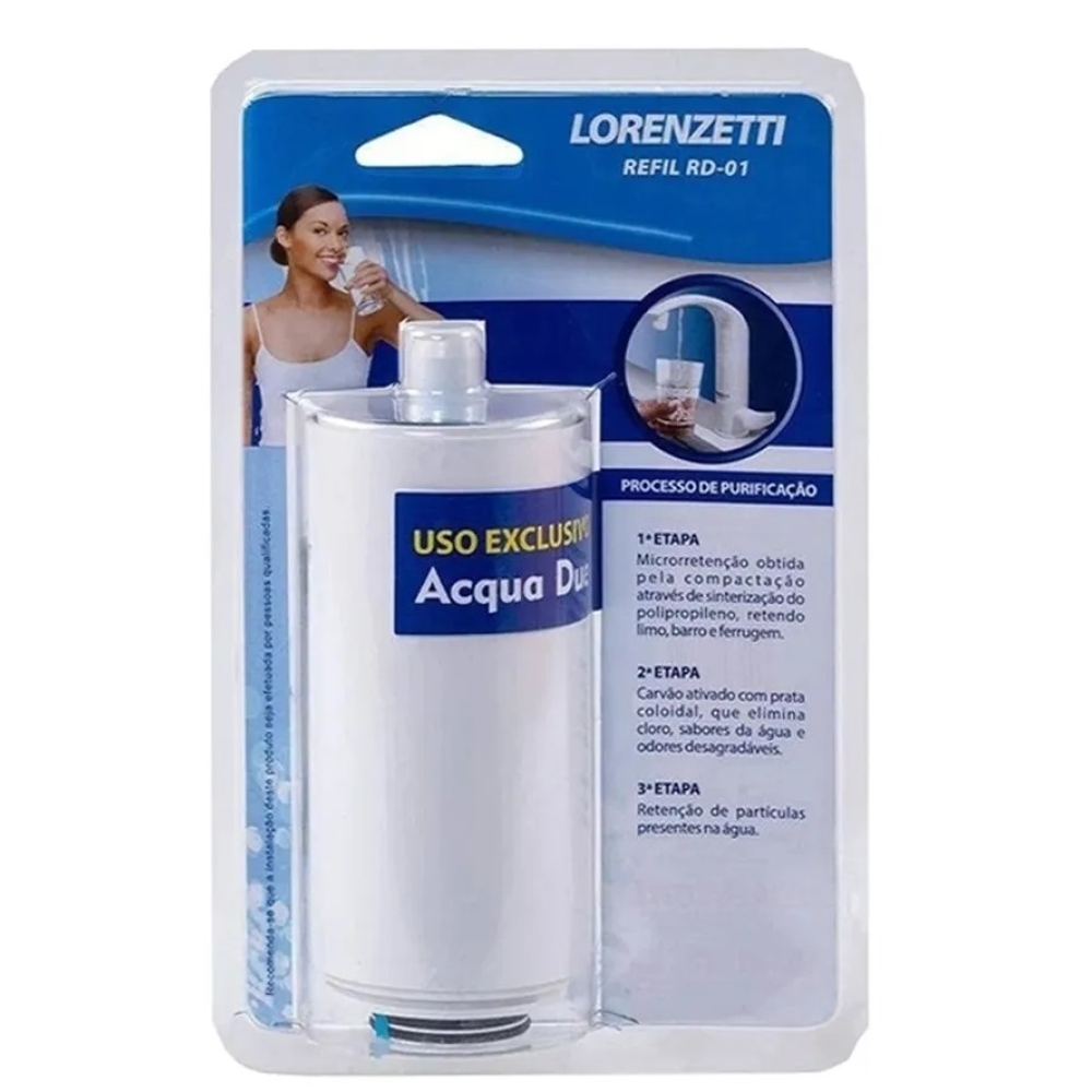 O refil é responsável por reter partículas presentes na água, elimina o excesso de cloro, gostos e odores desagradáveis da água e evitar a proliferação de bactérias, e para purificador Acque Due Lorenzetti, proporciona um processo de purificação eficiente em 3 etapas.