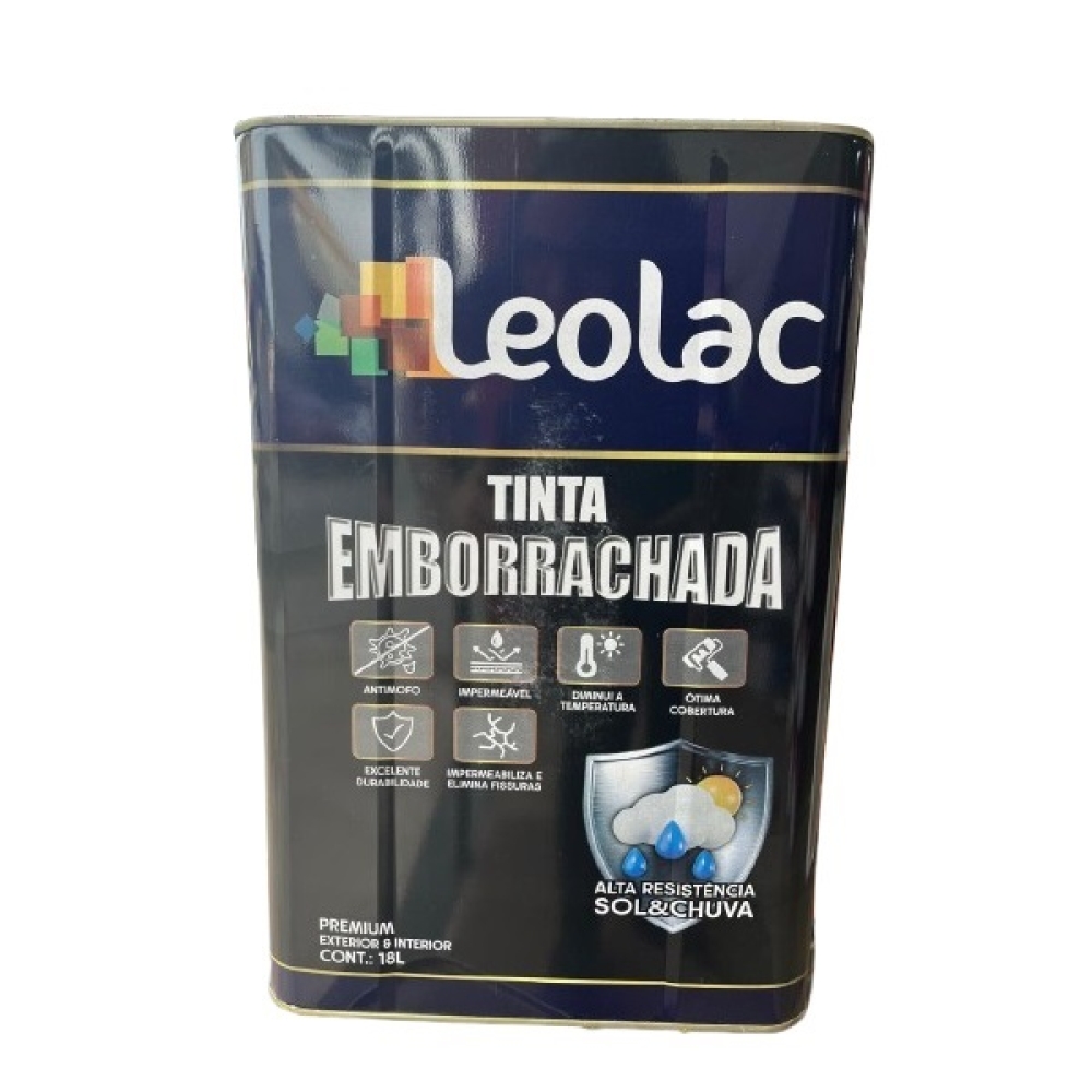 A tinta LEOLAC EMBORRACHADA é a solução completa para pintar e proteger paredes internas e externas, pois forma uma película emborrachada flexível que previne fissuras e infiltrações, combate o mofo e bolor, além de conferir máxima durabilidade e resistência. Foi desenvolvido para ser aplicado diretamente em paredes novas ou rebocos, pois bloqueia o aparecimento do salitre.