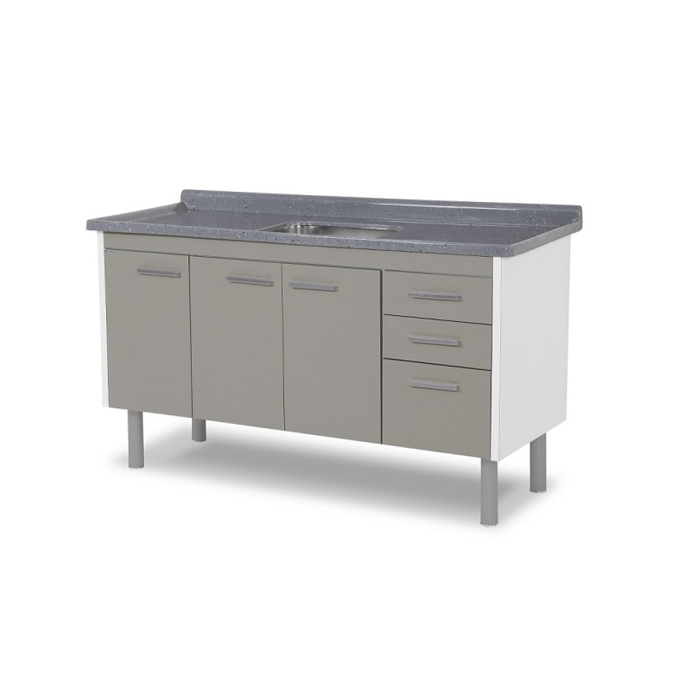 É composto por duas gavetas e um gavetão, que facilita a organização e armazenamento de utensílios maiores.