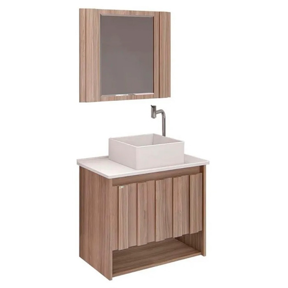 Gabinete com Espelheira Treviso Suspenso 63,5cm Com pia Quinto Nogal Sevilha Rorato para Banheiro.