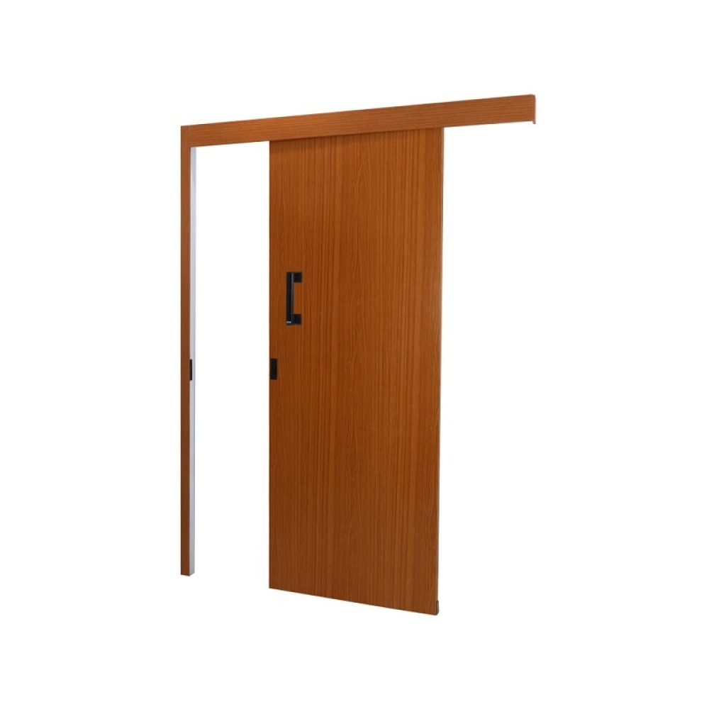 Kit Porta de Correr Melamínica Sobrepor Lisa Mogno Batente Branco Reversível 215x80cm Código 93475 Mgm