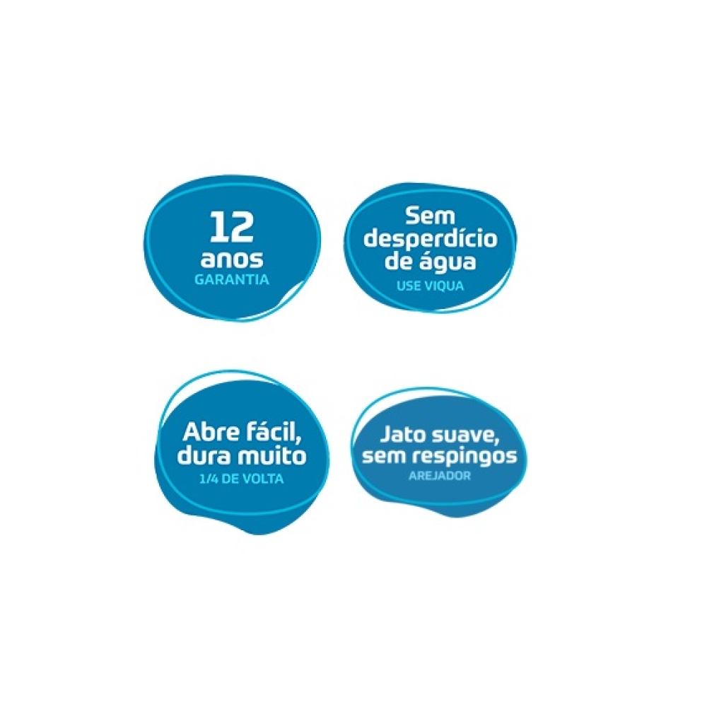 Garantia: 12 Acionamento Acionamento 1/4 de volta com o novo cartucho cerâmico Víqua, garantindo o fechamento perfeito da torneira com menor esforço.